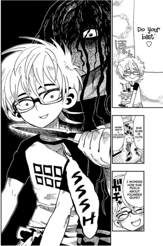 Normally, I would not review characters such as the manager as his yandere qualities were dubious. His yandere persona was played for laughs, and the fact that he quickly switched his target from Sonezaki to Aotsuki made me question his love for either of the characters. However, this manga is short and the manager is really quite funny despite all his creepiness. So, I do recommend you to check it out, just for the silliness of it all.