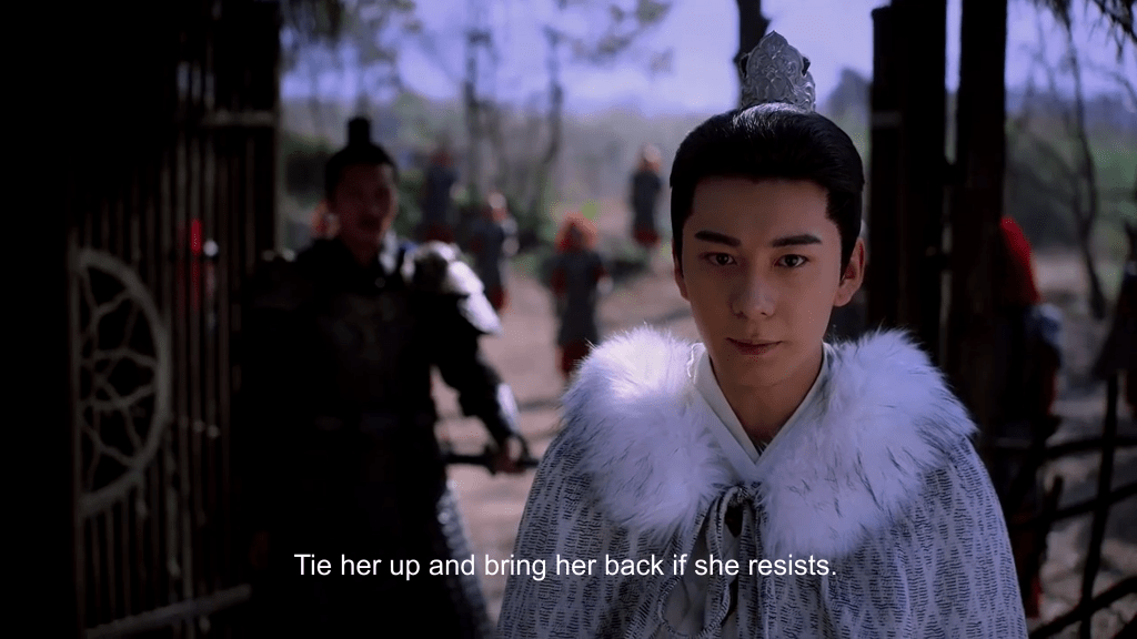 They kept Xiao Feng locked up in the tent, and even fed her drugs to weaken her and prevent her from escaping. Li Cheng Yin knew of this, but did nothing to stop Xiao Feng’s suffering. Ultimately, he just wanted to bring her back with him to Li. It was only when Gu Jian came and threaten to go all out against his soldiers and himself did Li Cheng Yin let Gu Jian take Xiao Feng away. He almost wanted to fight Gu Jian for it, and only stopped as Gu Jian was his cousin, and had also helped him tremendously along the way.