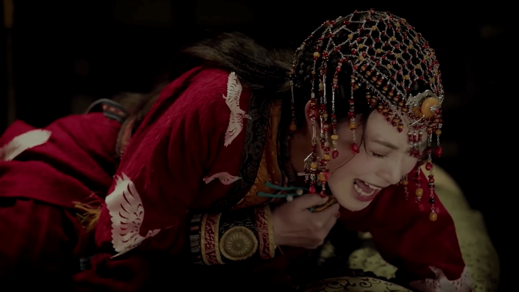 Li Cheng Yin succeeded in his plot. On the day of their marriage, armies arrived to corner Dan Chi’s troops, and ambushed them to score an easy victory. Xiao Feng’s close ones, relatives and fellow clan members all died due to the unexpected war. On the same night, Xiao Feng saw with her own eyes as Li Cheng Yin personally beheaded her grandfather to claim war merit. The mental suffering was too great for Xiao Feng to bear, as she realized that her letting Li Cheng Yin into Dan Chi was the cause of the calamity.