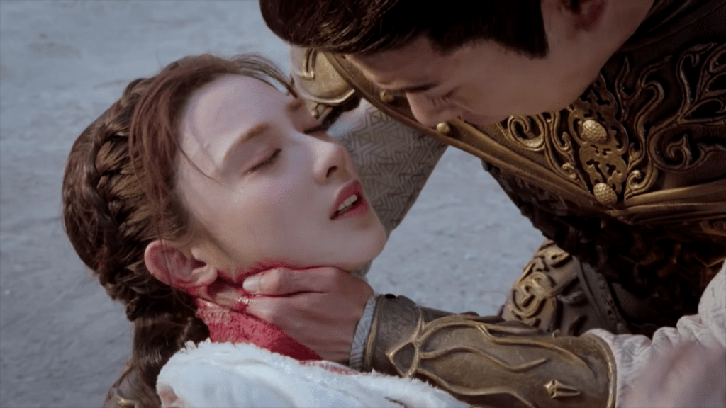 The bad things didn’t end here, however. Li Cheng Yin and his supporters tried to keep Xiao Feng with him so that she can be brought back to Li Kingdom for the political marriage. In the process, the queen of Western Liang got cornered into committing suicide, and the king was driven mad. Xiao Feng couldn’t bear the tragedy any longer, and ended up jumping into the mythical Wang Chuan River, which can allow all sorrows to be forgotten. Li Cheng Yin followed after her in a failed attempt to prevent her jump.
