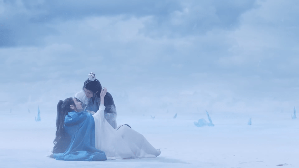 To prevent unnecessary war from breaking out between the two parties, Ji Yun He sacrificed herself to provide a temporary cure for the members of the Floral Valley who were under the Frost’s influence. In her last moments, she finally revealed hints of her true feelings for Chang Yi as she laid in his arms. Despite the desperate efforts by Chang Yi, Ji Yun He still perished into the air, leaving Chang Yi behind, bearing a guilt of losing her.
