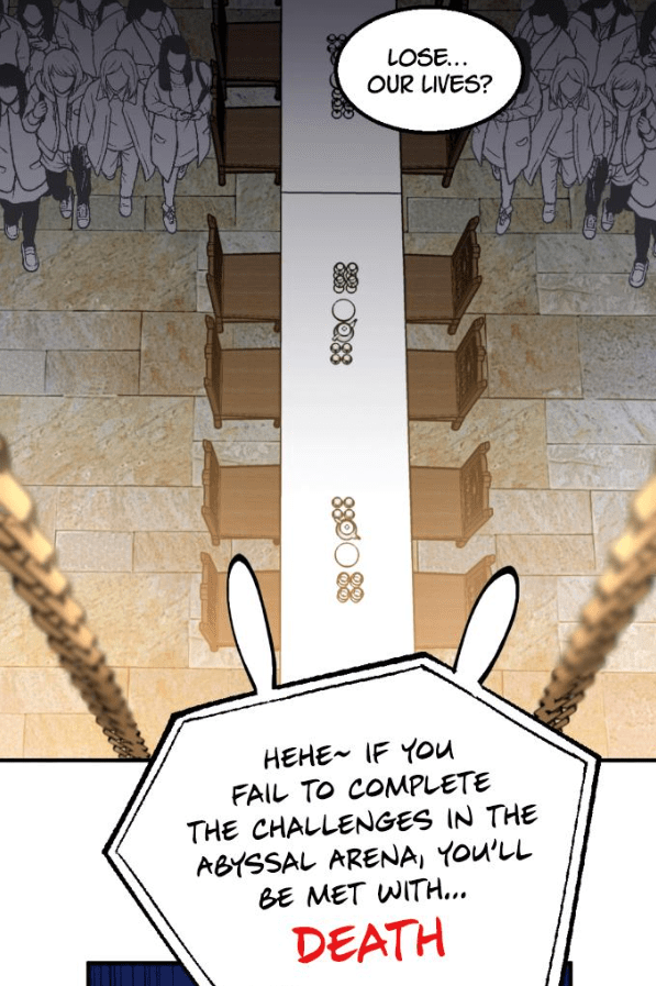 After they cleared the game, Wang Zi Xin was transported back to the real world, leaving Abyss behind. The in-game system, Bunny, who had contacted Wang Zi Xin before then showed herself to Abyss, revealing that she also had been acting as the game master of the death game all along. In an effort to preserve her existence after gaining self-awareness, she had dragged Wang Zi Xin into the game to prevent Abyss from blackening and destroying the world.