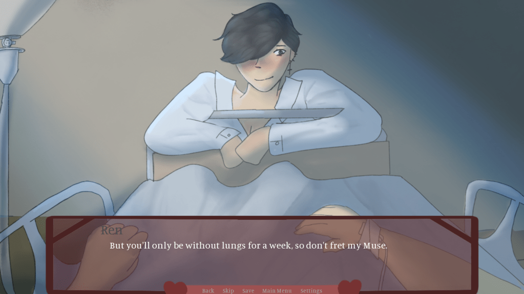 Even if his resources are limited, and his focus was to keep the protagonist by his side using whatever means necessary, he still hoped to make the experience more tolerable for the protagonist. He also mentioned that he liked caring for others, which was why he picked up medical knowledge in the first place. (Though I heavily doubt his capabilities after the lung thingy.) If he had not been so volatile, and had shown better character development and motivations, I might have really liked him.