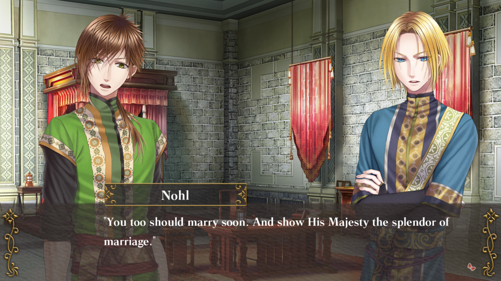 One thing I am disappointed about though, is that all love interests are from Nasla (though some do have relations to other countries). Throughout the entire game, there is no story branches where Naala actually get to resist Nasla and return to Rus. If she did, the story quickly ends in a bad ending. I don’t get it. Why must Naala always have to fall for someone in the foreign nation and stay there for it to be a good ending? Why can’t she decide to prioritize her home country, return to Rus, and live happily ever after there?